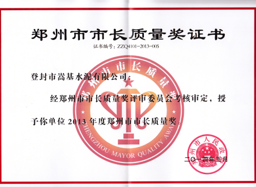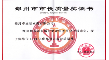 鄭州市市長質(zhì)量獎(jiǎng)證書